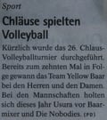 Das Chlausturnier war wie immer unterteilt in Herren am Samstag und Mixed am Sonntag. Am Samstag erreichte das Yellow Herren Team den ersten Rang von 6 Teams. Und am Sonntag erreichte das Yellow Mixed Team den etwas enttäuschenden 6. Platz von 18 Teams.