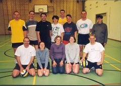 Gruppenbild 2002 der Volleyballer (Yellow 2) vom Verein Yellow Baar. In diesem Jahr durftenwir in der Turnhalle Sternmatt im Baarer Dorf trainieren.